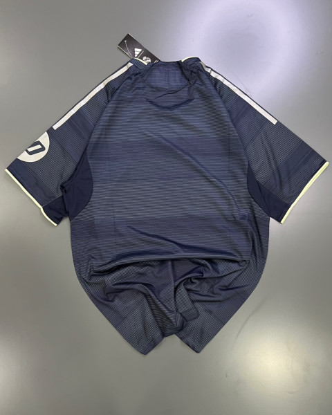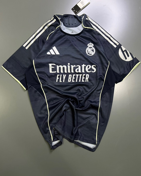 • Details: It often includes a subtle moiré effect or a line design across the shirt, which is reminiscent of the Bernabéu's exterior structure.