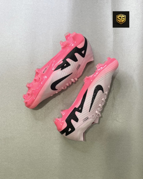 The Nike Air Zoom Mercurial Vapor 15 (often referred to as Vapor XV) is a high-performance soccer cleat from Nike’s iconic Mercurial line, designed for speed and agility on the pitch. It’s endorsed by elite players like Kylian Mbappé, Cristiano Ronaldo, and Ada Hegerberg. Pink colorways, such as Pink Foam/Black (from the Mad Brilliance pack) and Pink Blast/Volt/Gridiron (from the Luminous pack), offer vibrant, eye-catching aesthetics while maintaining the boot’s focus on explosive movement. These variants feature a bold pink base with contrasting accents like black, volt green, or gridiron gray for a dynamic look suitable for firm ground (FG) surfaces.